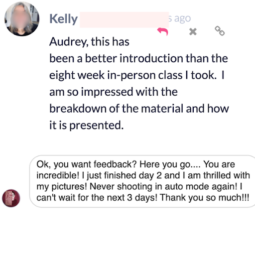 Taken by over 3,000 photographers, the Beginners Bootcamp skips the usual fluff and filler, and instead gives you step-by-step, real world techniques that will help you capture sharper, more creative photos - and in less than a week!